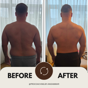 Samen met zijn personal trainer bij Pro Coaching by Anis Ammar begon hij aan een 12 weken traject. Geen extreme schema’s, maar: